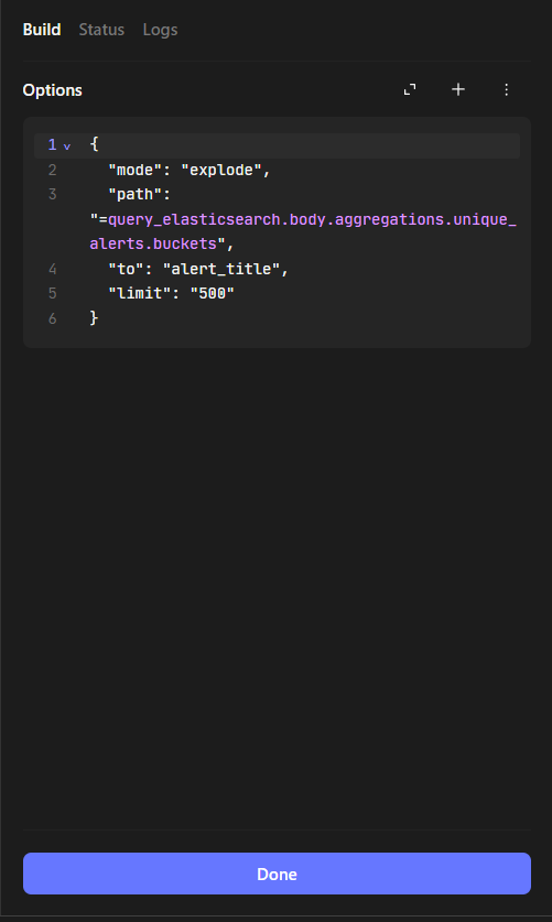 To: The result of the transformation is being sent to the field alert_title, which stores the alert titles found in the Elasticsearch query.
